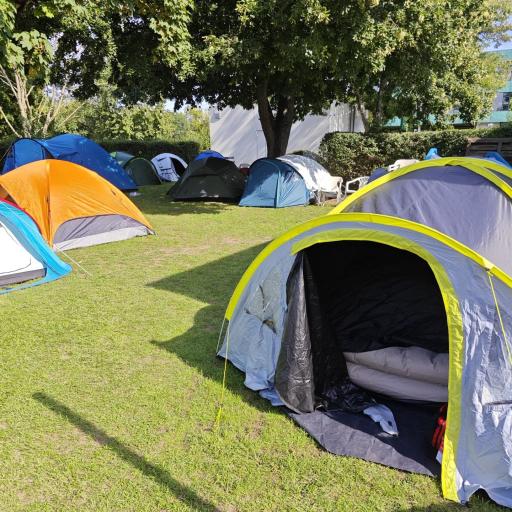 Mit 23 Jugendlichen übernachteten wir vom 03. bis 05. August auf unserem Gelände im Stadtbad. Mit 15 Zelten war von unserer Wiese jedoch nicht mehr viel zu sehen da, bedingt durch Bauarbeiten, ein Stück der Wiese nicht benutzt werden konnte.