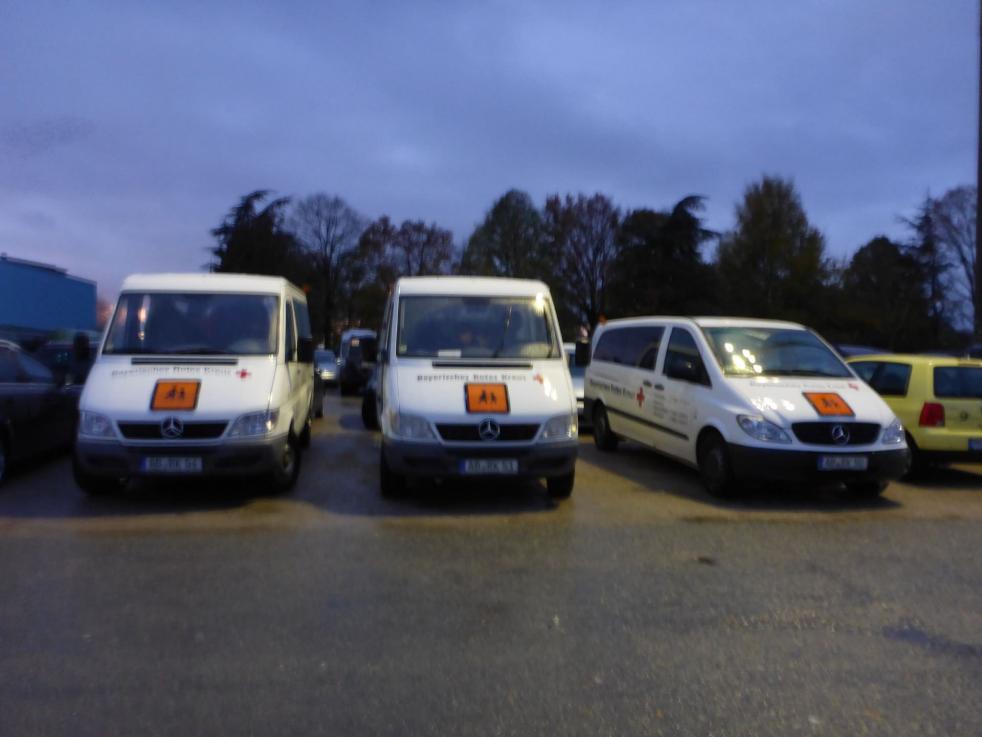 Da wir für die Fahrt 3 Buschen vom BRK zur Verfügung gestellt bekamen, hatten wir als Treffpunkt das Gebäude des Roten Kreuzes in Nilkheim gewählt.