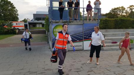 Danach wurde das Buffet aufgebaut und die große Grilltonne angefeuert, so dass es um 19 Uhr schon sehr verlockend roch. Nach dem Essen und einer Verdauungszeit ging es dann zu einer Übung im Sportbecken, hier konnte die Jugend zeigen was über das Jahr schon in der Theorie und Praxis gelernt wurde. Vom einfachen Krampfanfall, über einen panischen Schwimmer welcher die Helfer umklammerte bis zur bewusstlosen Person.