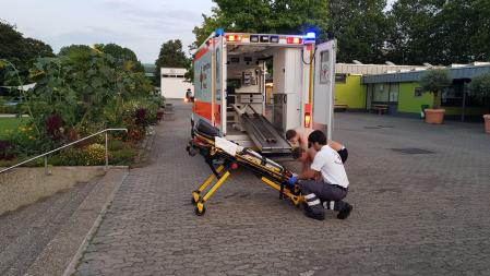 Dank der Bereitschaft Aschaffenburg welche davor ausführlich den Krankenwagen vorgestellt hatte wurden die Patienten dann auf verschiedene Weisen zu diesem transportiert und betreut.
