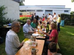 Die Übergabe der Jacken war eingerahmt in eine ausgiebiges gemütliches Beisammensein mit Kuchenbuffet, Grill, Cocktailbar und es dauerte lange, bis an diesem lauen Sommerabend so manche Erinnerung an schon längst vergangene Wasserwachtzeiten ausgetauscht war.